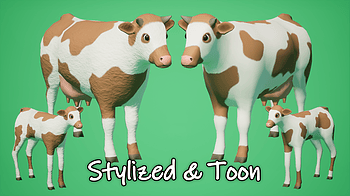 12 Cute Variations of Cows & Calfs including 33 Animations each - To add into your low poly or stylized game!