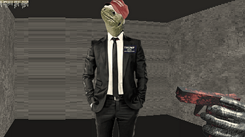 A psychedelic shooter with elements of horror, visual novel, and there's also Trump the reptilian